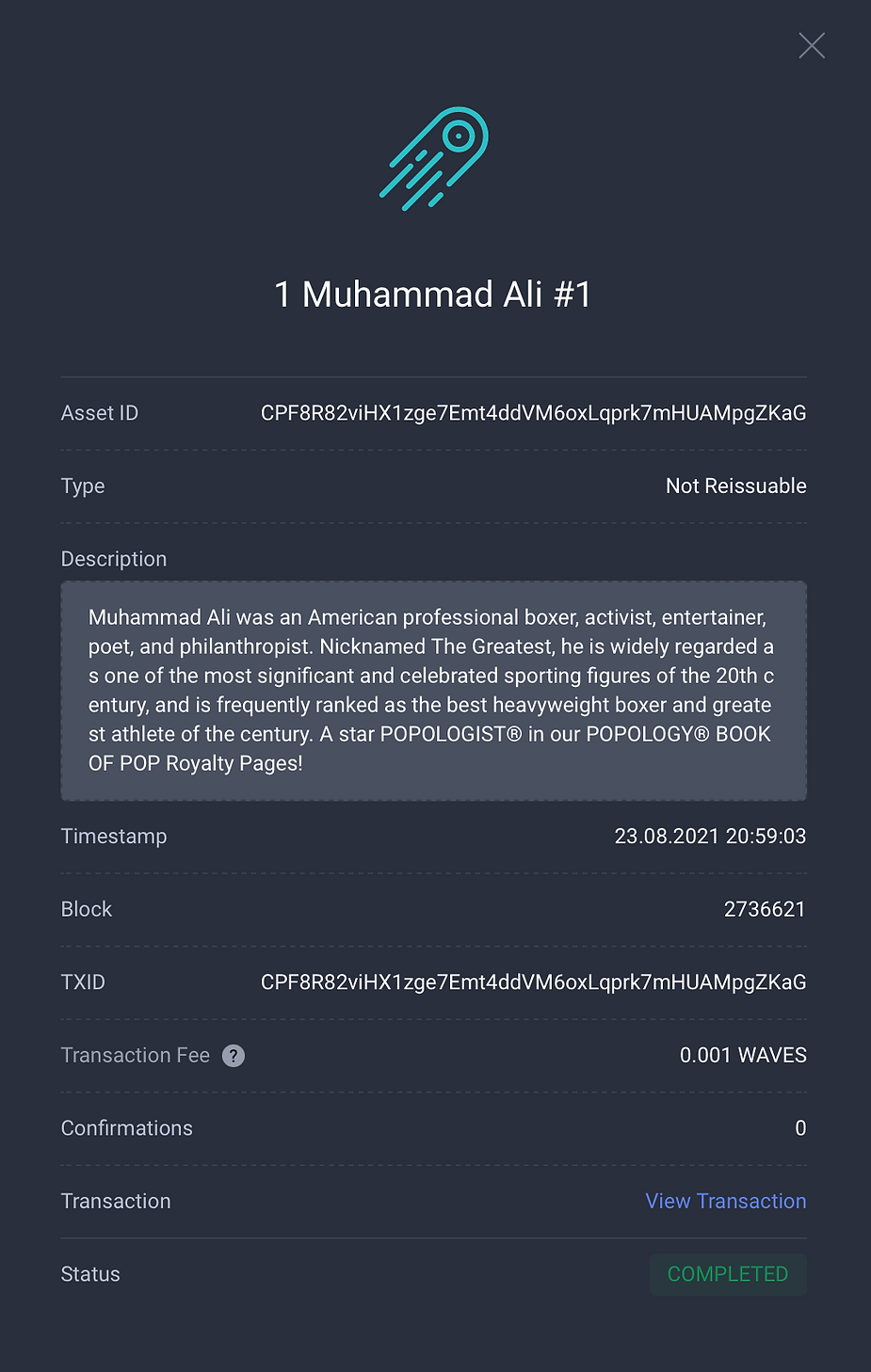 The Muhammad Ali BOOK OF POP Royalty Page NFT
